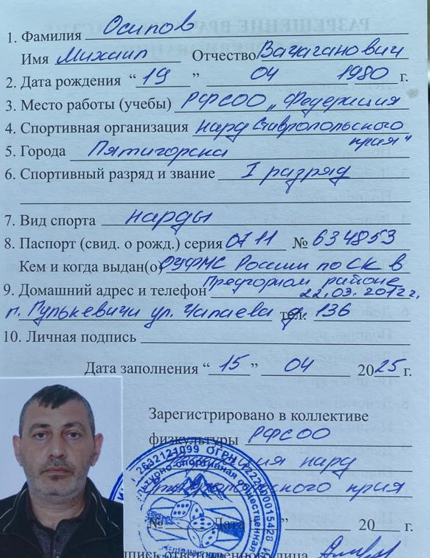 Михаил Осипов ->>> занял 2—место на Первом чемпионате Ставропольского края по нардам 15 февраля 2025 г.