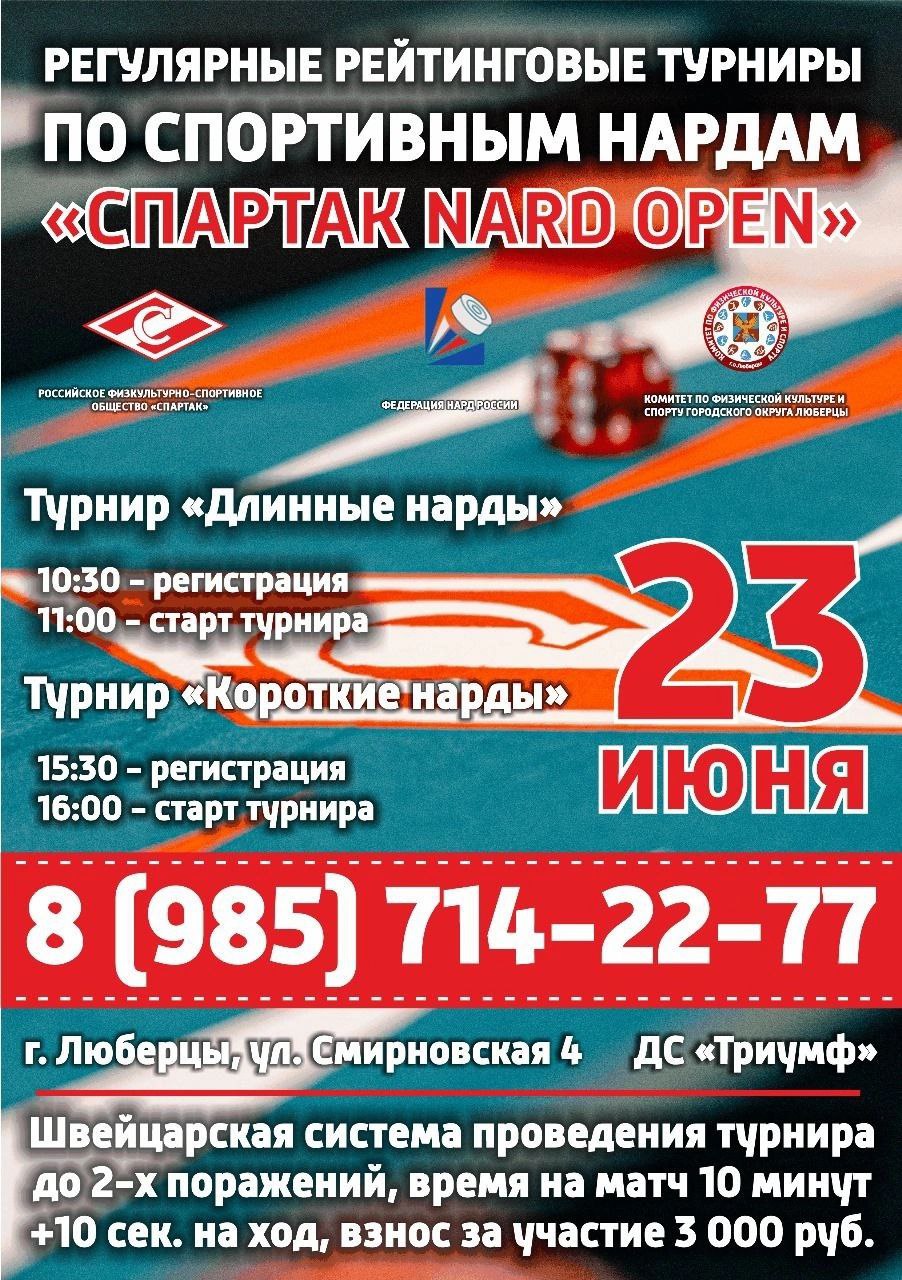 23 июня в Люберцах состоятся рейтинговые турниры по длинным и коротким нардам "Спартак Nard Open
